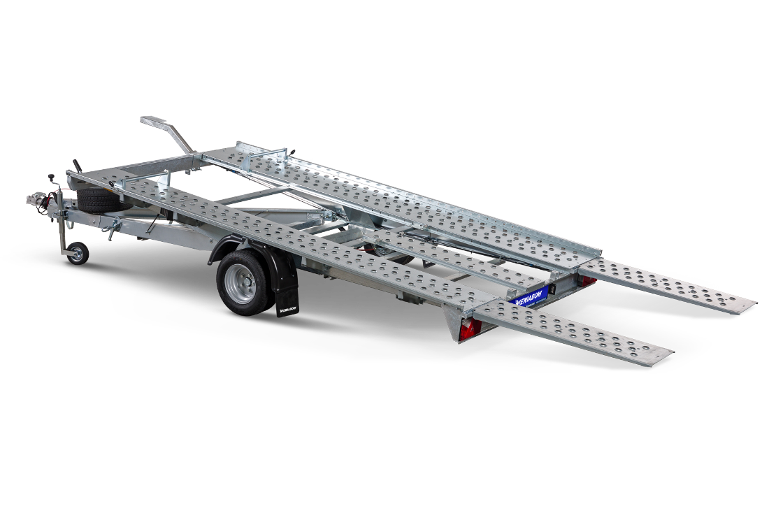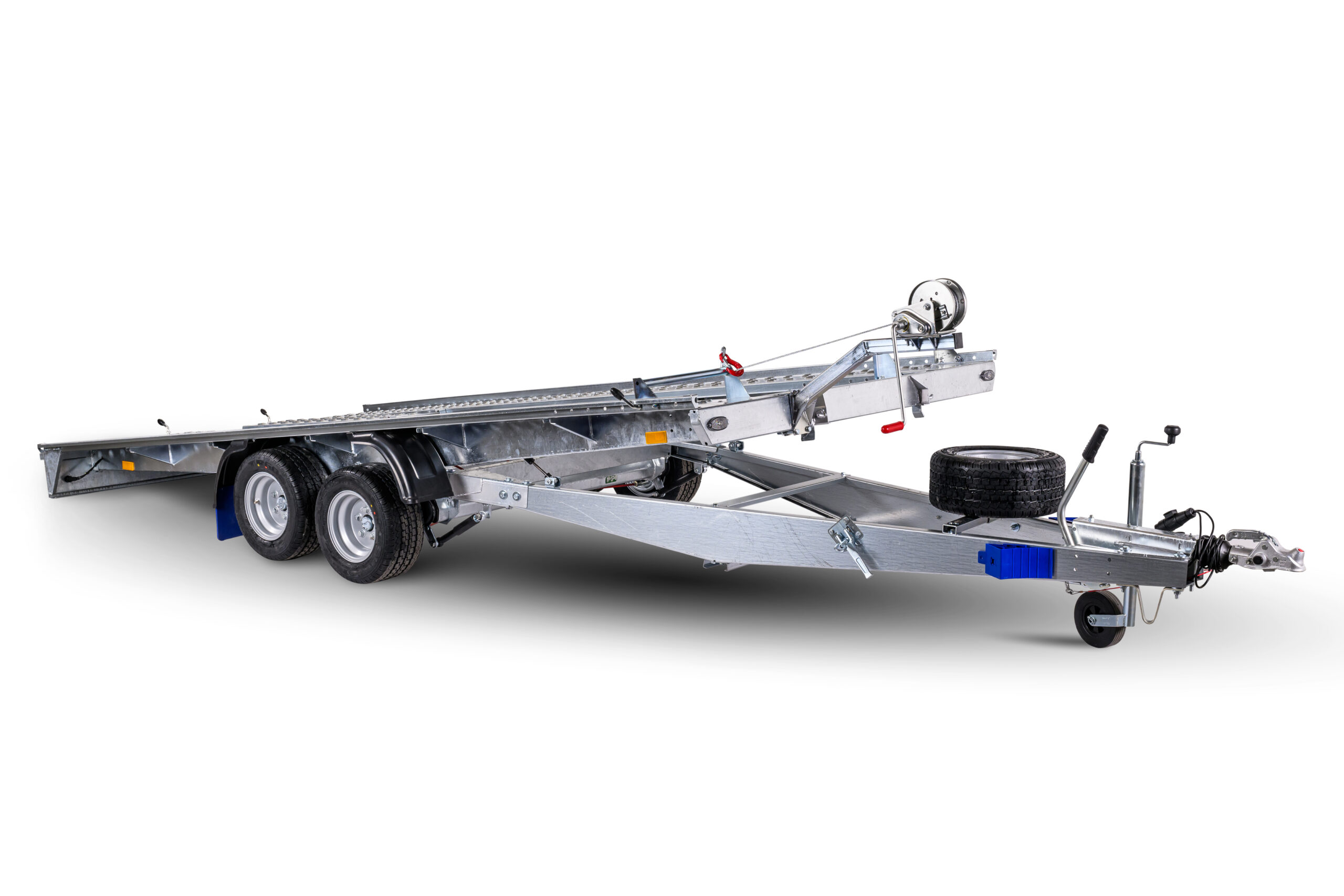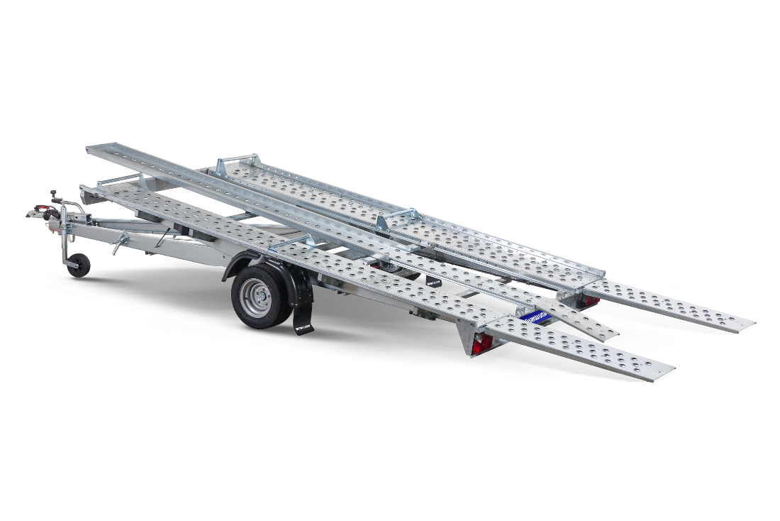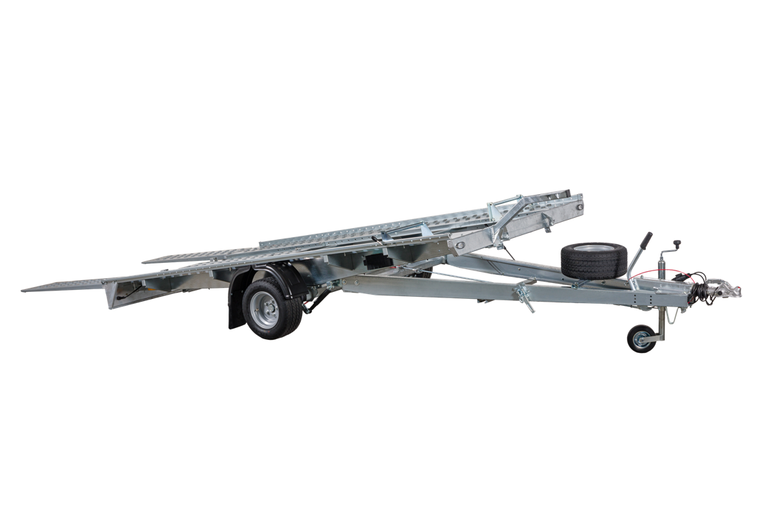 SONDA eftirvagnalínan er hönnuð til að flytja bæði bíla og önnur fjölhjóla ökutæki. Hallandi hleðslupallurinn, knúinn af gaskút, er tilvalinn bæði fyrir lestun og affermingu og 1,25 metra stálrampar tryggja greiðan aðgang að eftirvagninum.