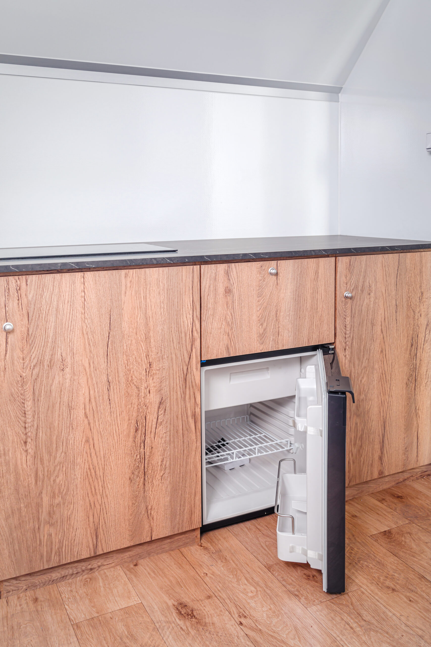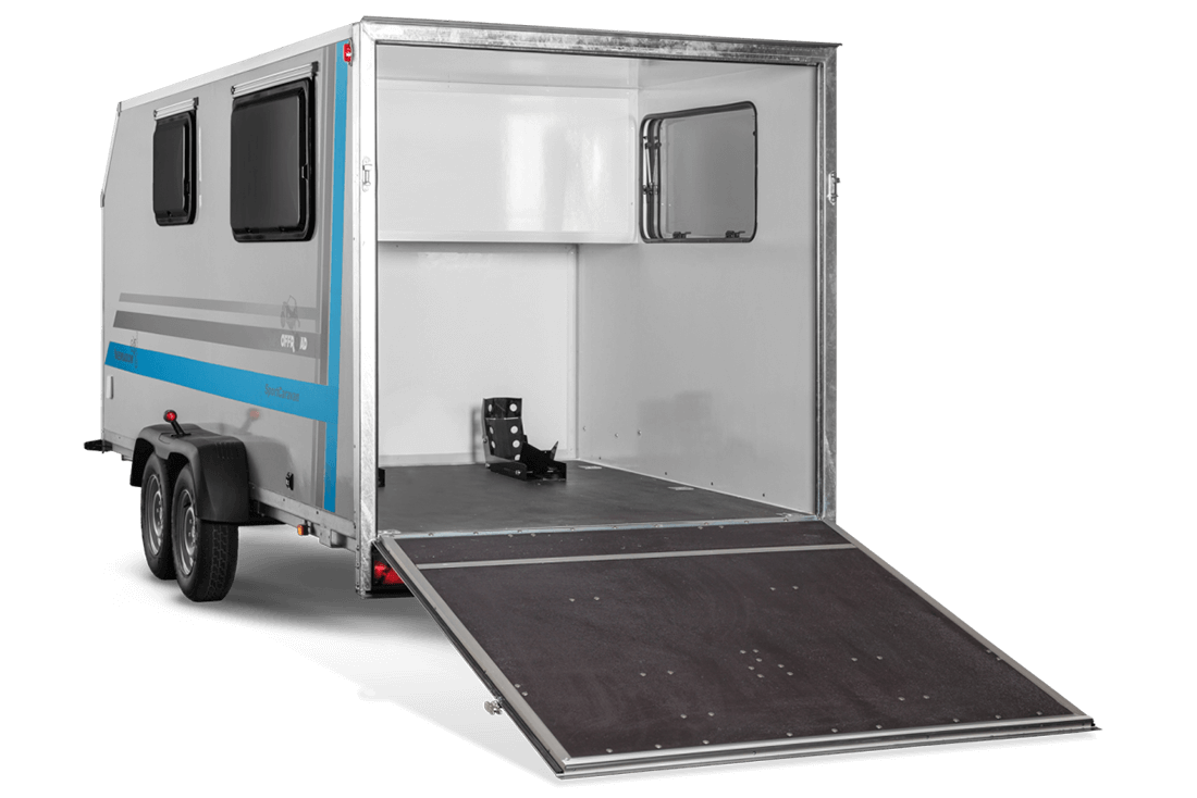 Með Sportcaravan getur þú ferðast með græjurnar þínar á öruggan hátt og þarft ekki að bóka gistingu fyrir ferðalagið. Þetta er hin fullkomna lausn fyrir mótorhjólamenn, áhugamenn um öfgaíþróttir og alla sem meta sjálfstæði í ferðalögum. Stofan er búin rafmagni, vatni og gasi, sem og eldhústækjum eins og gaseldavél, ísskáp og vask. Einnig er hægt að óska eftir því að hafa salerni í rýminu.
